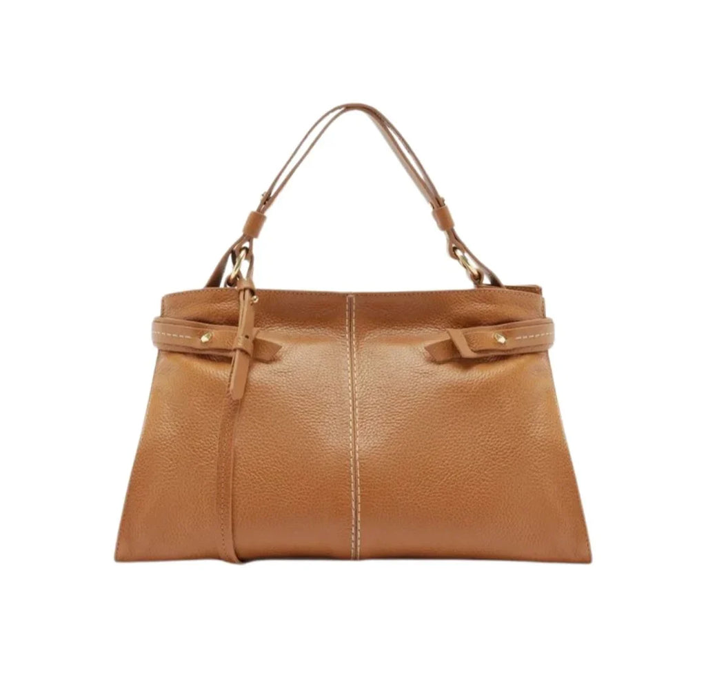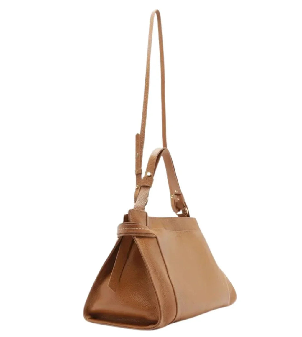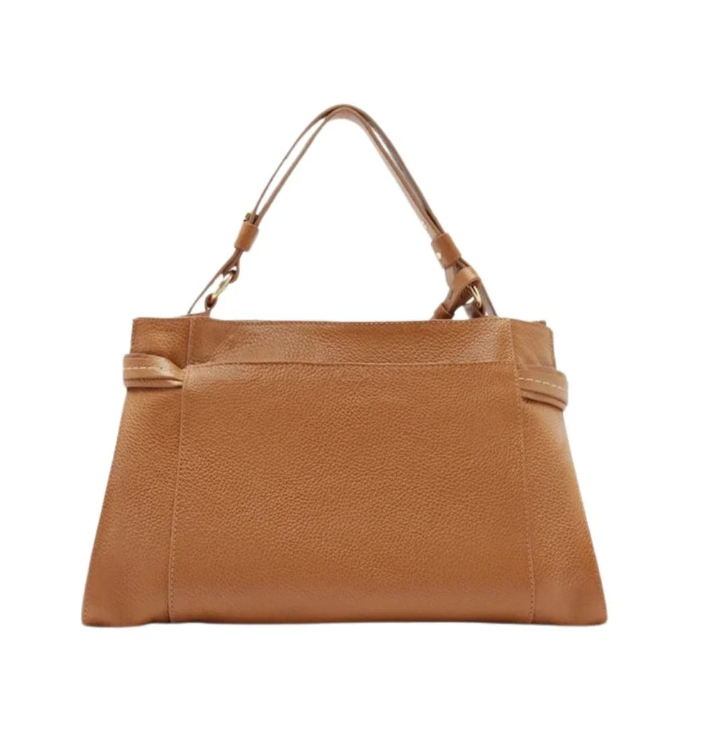 Bolsa Tote Marrom Couro Legítimo Grande Tiras Laterais