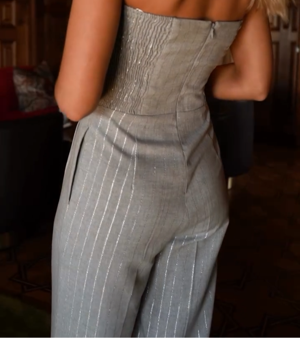 Desperte sua elegância com este macacão tomara que caia em alfaiataria moderna. O corte reto com listras verticais alonga a silhueta e garante sofisticação em qualquer ocasião. Versátil, pode ser usado tanto em eventos formais quanto em produções mais fashionistas. Combine com salto para um look poderoso ou sandália baixa para um visual leve e estiloso.