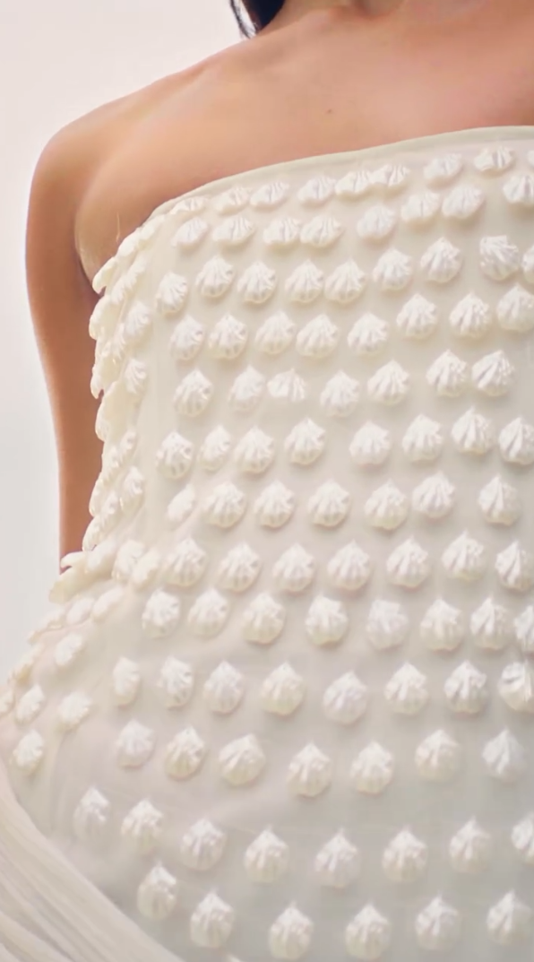 Um top exclusivo que une delicadeza e ousadia em uma só peça. Confeccionado em tule leve com bordados em relevo, seu design tomara-que-caia realça os ombros e transmite sofisticação. A textura tridimensional cria um efeito visual elegante e moderno, perfeito para quem deseja se destacar com autenticidade.